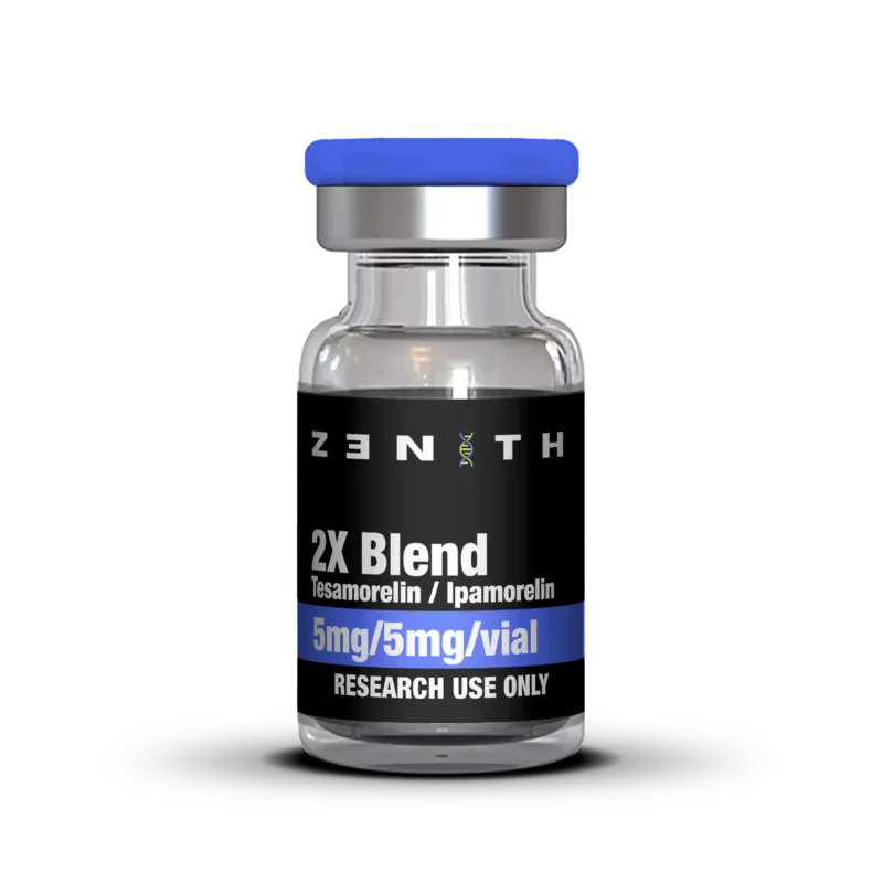 - A blend of Tesamorelin (5mg) and Ipamorelin (5mg) studied for its role in regulating growth hormone (GH) secretion.